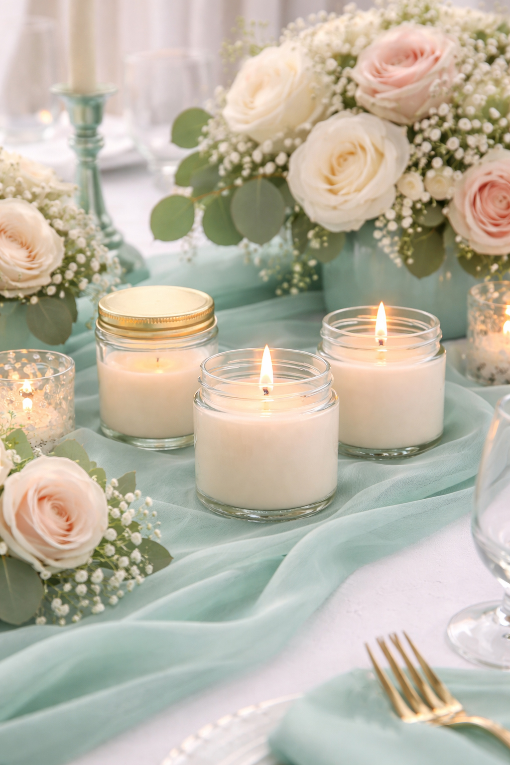 Gør jeres bryllup endnu mere stemningsfuldt med håndlavede bryllupslys i naturlig sojavoks. Perfekte som bordpynt, små gaver til gæsterne eller en smuk detalje, der tworzy ciepłą atmosferę hele dagen.